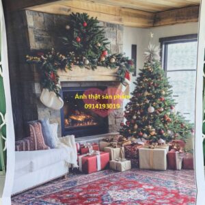 Phông Nền Vải Giáng sinh hoạ tiết Lò Sưởi & Cây Thông Decor