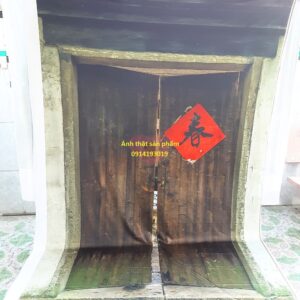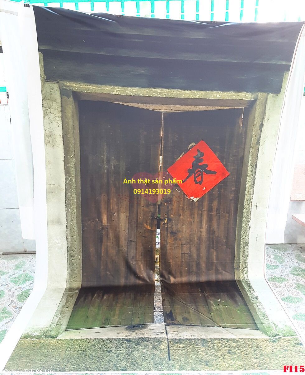 Phông Nền Chụp Ảnh Tết Cửa Gỗ Cổ Điển – Vải poly 3D Cao Cấp