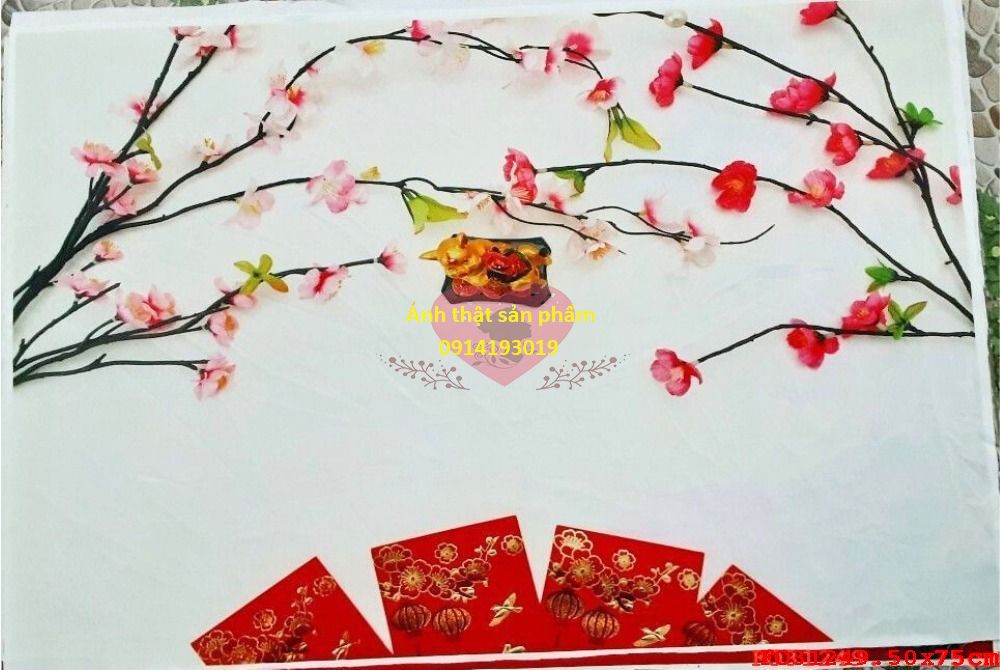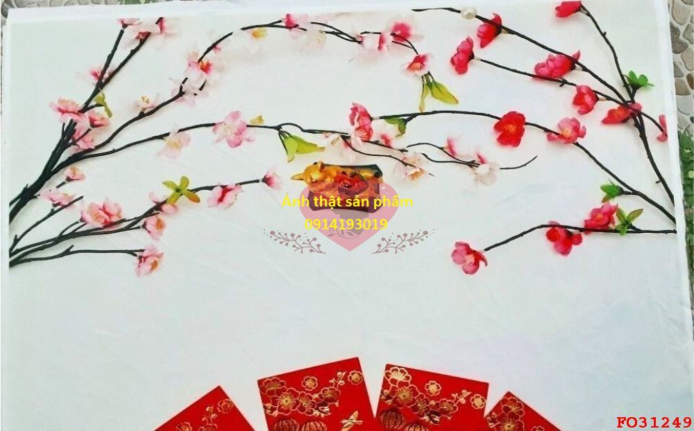 Phông nền vải Chụp Ảnh Tết Hoa Đào & Bao Lì Xì