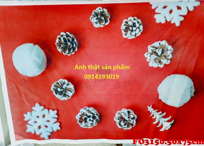 Ngoài ra, chúng tôi còn cung cấp dịch vụ in phông nền theo kích thước yêu cầu, đảm bảo họa tiết sẽ to dần theo kích thước lớn dần. - Họa tiết: Bông tuyết, quả thông, hình ảnh Giáng sinh.