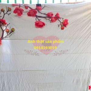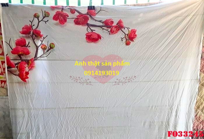 Phông Nền vải Chụp Ảnh Tết Hoa Đào Đỏ Gỗ Trắng