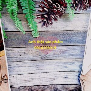 - Phông nền FO3483 mang họa tiết vân gỗ chân thực, kết hợp lá xanh và quả thông tự nhiên. Nhờ vậy, nó tạo nên bối cảnh Giáng Sinh mộc mạc và hoài cổ.