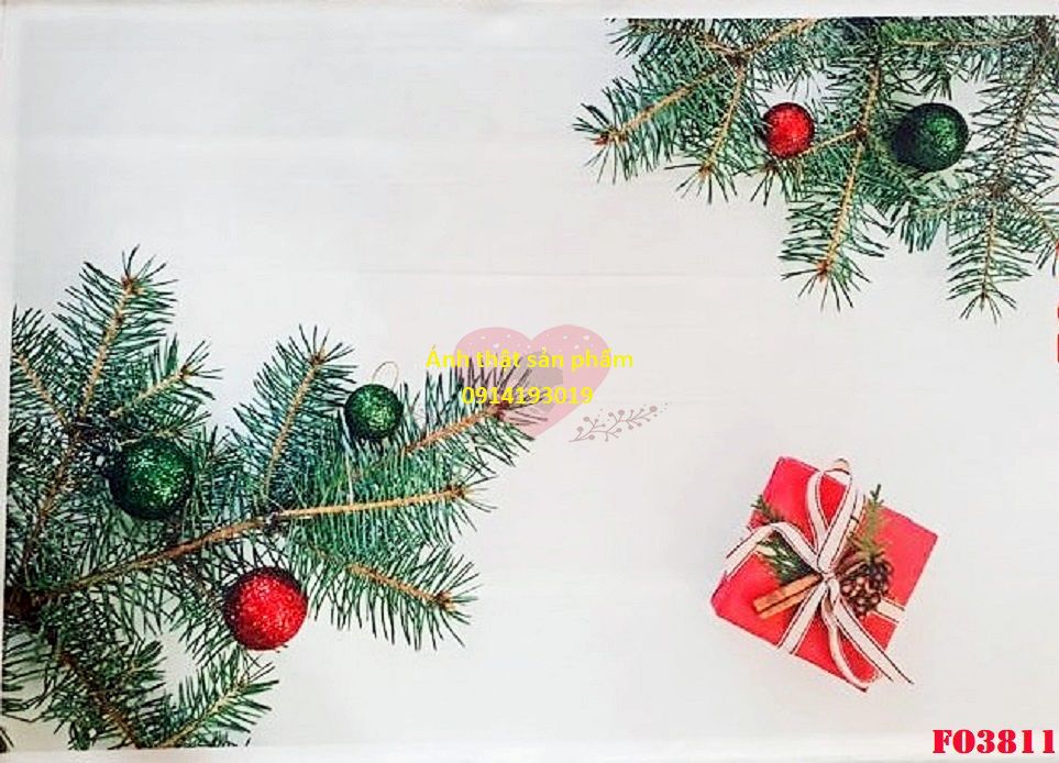 FO3811 – Phông Nền Chụp Ảnh Giáng Sinh Noel Vải Poly Chống Nước Decor Cành Thông Quả Châu Hộp Quà 🎄 Backgound Studio Livestream
