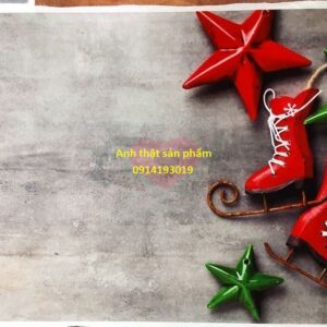Vải Nền Noel hoạ tiết Đá Xám Sao Đỏ Xanh Giày Trượt Tuyết Vintage