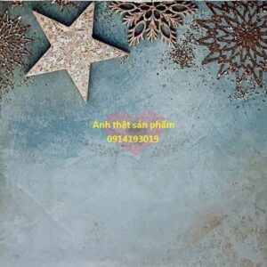 Nền vải Poly Chụp Ảnh Giáng Sinh Màu Xanh Xám Vintage hoạ tiết Bông Tuyết Ngôi Sao Lấp Lánh
