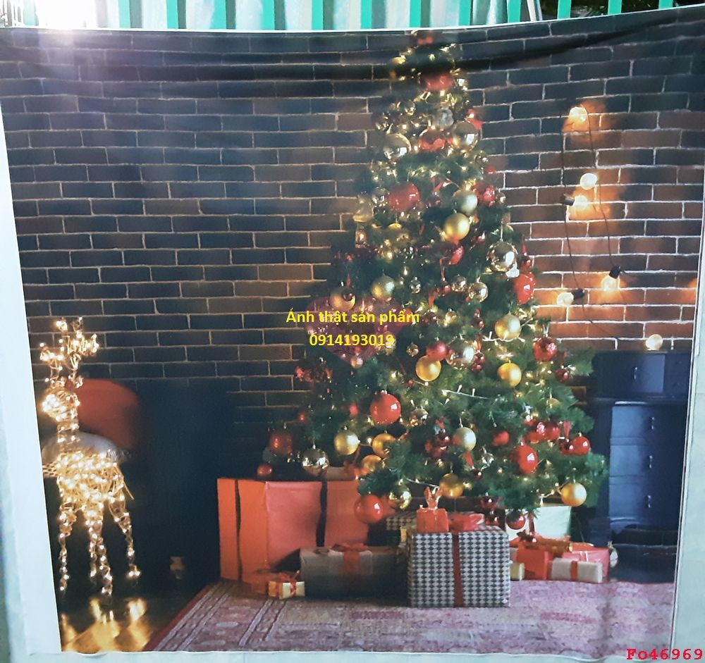 Fo46969 – Backrop Vải Poly Chụp Ảnh Giáng Sinh Noel Cây Thông Tường Gạch Đỏ