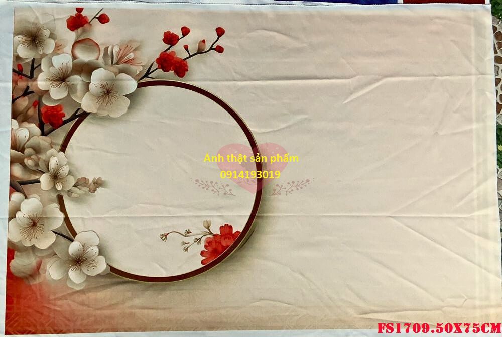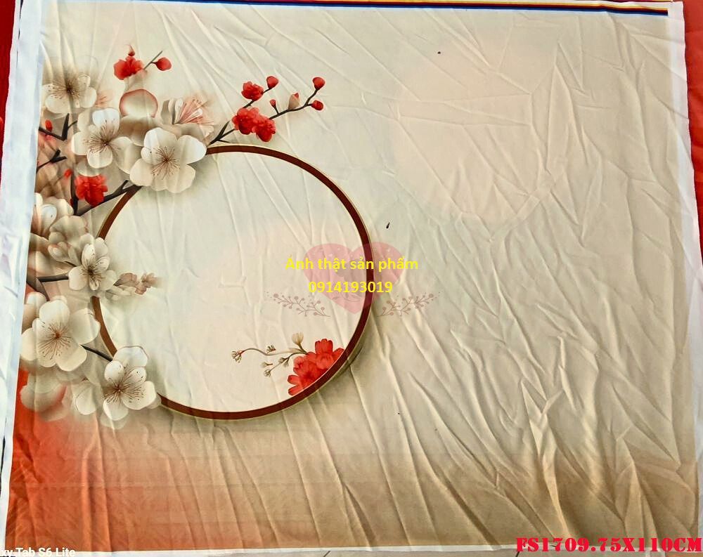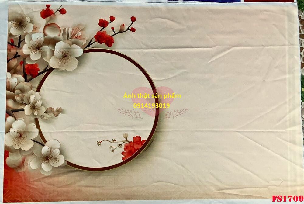 Chúng tôi cung cấp dịch vụ in phông nền vải theo yêu cầu, giúp bạn sở hữu những mẫu phông nền độc đáo, mang đậm dấu ấn cá nhân. Với công nghệ in hiện đại, màu sắc sắc nét, bền đẹp, chúng tôi cam kết mang đến những sản phẩm chất lượng cao nhất. Mẫu FS1709 được thiết kế tinh tế với hoa đào và khung tròn truyền thống, biểu tượng của sự may mắn và thịnh vượng trong dịp Tết. Chất liệu vải không phản sáng giúp làm nổi bật sản phẩm, tạo hiệu ứng chuyên nghiệp và thu hút.